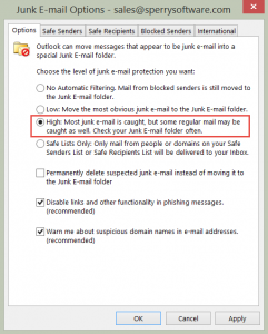 The “High” option should be used to prevent the most amount of junk mail from reaching your Inbox.